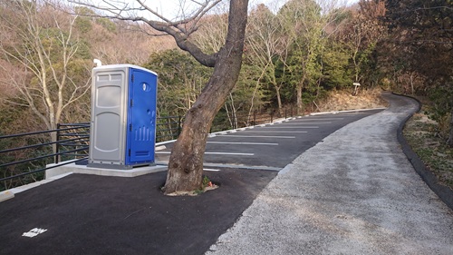 新しく駐車場が出来ていました。ミカン畑を抜けるときに農家の方に挨拶したところ、上に駐車場が出来てるよって教えてくれました。その方が駐車場の設計をしたそうです。簡易トイレも設置されていました。
