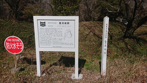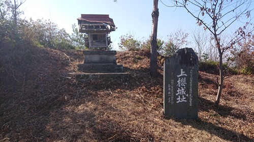 城跡と土塁の説明書きがありました。土塁はほんの少しだけ残っている感じでした。
